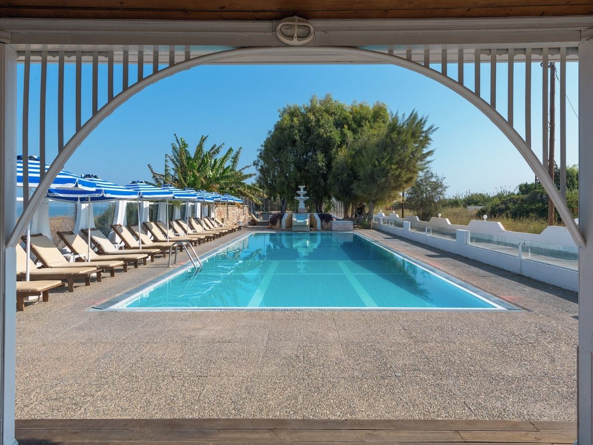 In the laid-back village of Tholos, Nirvana Beach Hotel enjoys a quiet, authentic setting by the sea. Just steps from the hotel, the wide beach is ideal for windsurfing and kitesurfing, thanks to the refreshing Meltemi winds.